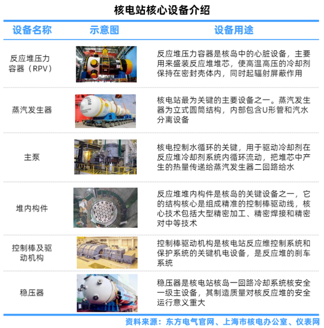 核島設(shè)備是承擔(dān)熱核反應(yīng)的主要部分,技術(shù)含量最高。常規(guī)島是指核電裝置中汽輪發(fā)電機組及其配套設(shè)施和它們所在廠房的總稱。常規(guī)島的主要功能是將核島產(chǎn)生的蒸汽的熱能轉(zhuǎn)換成汽輪機的機械能,再通過發(fā)電機轉(zhuǎn)變成電能。