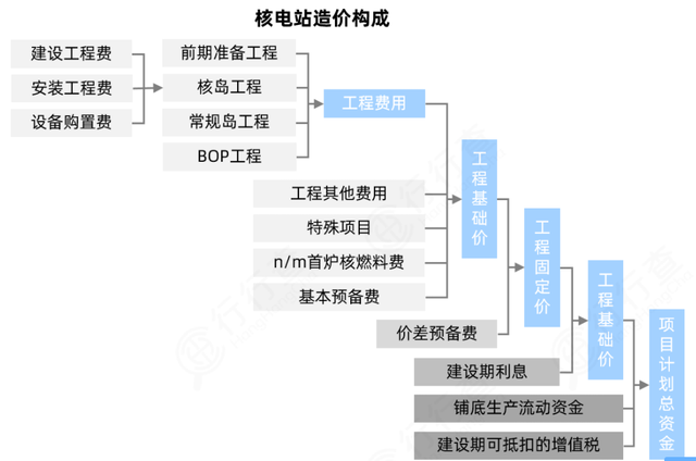 核電盈利能力主要由裝機容量決定。由于核電設(shè)備利用小時數(shù)有政策保證,基本維持在7000小時左右,所以核電的上網(wǎng)電量主要由裝機容量確定。在計算度電利潤則由上網(wǎng)電價和成本確定。在計算核電站生命周期時除了運用LCC全生命周期成本理論,即包括產(chǎn)品設(shè)計成本、制造成本、采購成本、使用成本、維修保養(yǎng)成本、廢棄處置成本等方面分析外,還要綜合考慮生命周期內(nèi)的平準(zhǔn)化度電成本(LCOE)。即對項目生命周期內(nèi)的成本和發(fā)電量先進行平準(zhǔn)化,再計算得到的發(fā)電成本,即生命周期內(nèi)的成本現(xiàn)值/生命周期內(nèi)發(fā)電量現(xiàn)值。