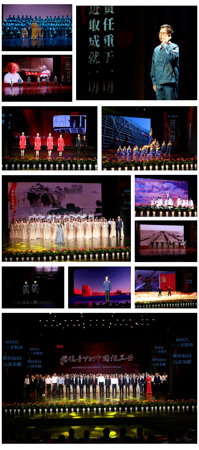 本次慰問演出由中核集團主辦,核工業科技館、中國核電、江蘇核電承辦,共分“核鑄基石”、“創新發展”、“奮進時代”三幕,以時間順序描繪了中國核工業在黨的堅強領導下從跟跑、并跑到領跑的發展歷程,展現了中國核工業在推動我國從站起來、富起來到強起來的過程中作出的突出貢獻,講述了核工業人在“兩彈一星”精神和核工業精神激勵下的奮斗歷程。