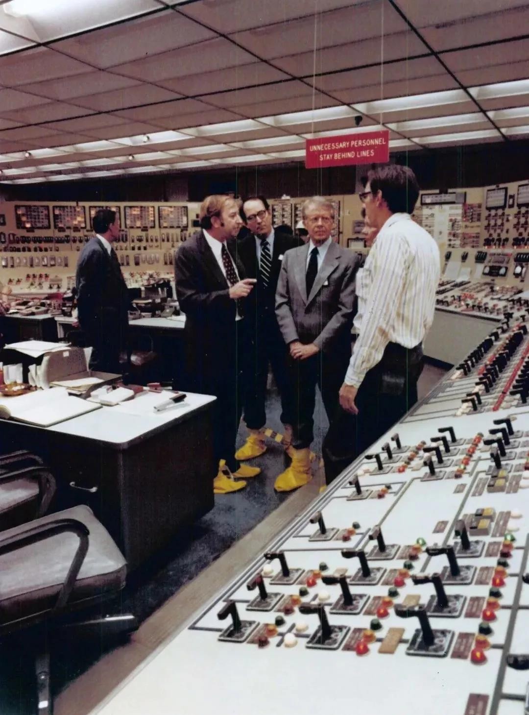 1979年4月1日卡特夫婦在丹頓、賓州州長陪同下參觀主控室