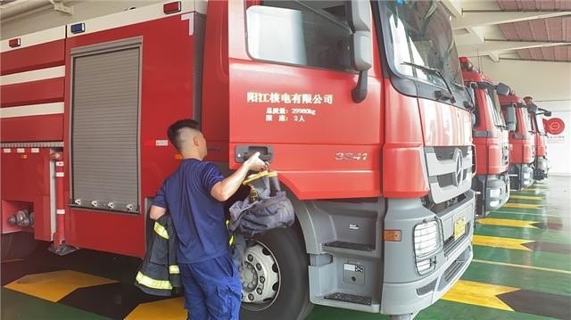 為做好核電基地防抗臺風工作,保障基地安全生產、后勤服務不斷不亂,中廣核服務集團有限公司在陽江核電基地各單位全力做好應急準備,提前采取應對措施,嚴防突發險情。特別是消防隊提前將車庫卷閘門打開,并將所有消防戰斗服、搶險救援服轉移至消防車,一旦發生險情,將以最快的時間趕往現場開展搶險救援工作。