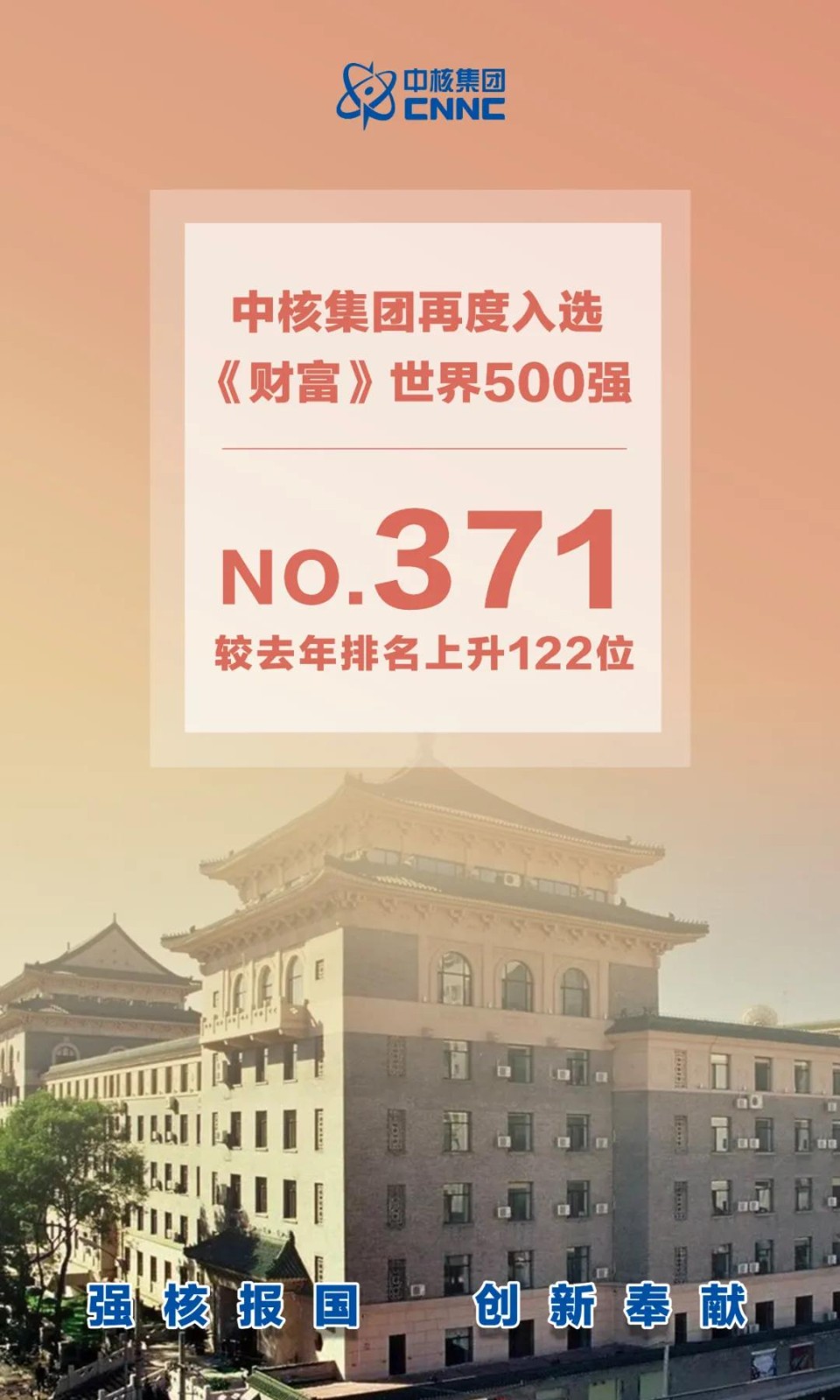 北京時間8月2日,美國《財富》雜志公布最新一期世界500強(qiáng)排名,中核集團(tuán)再度入選,位列第371位,排名較去年大幅上升122位。