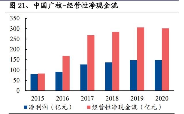(4)現(xiàn)金流: 核電資產(chǎn)運營期可獲得穩(wěn)健而充裕的經(jīng)營性凈現(xiàn)金流。2020 年,中國核電的經(jīng)營 性現(xiàn)金凈流入為 311.28 億元,是公司同期凈利潤的 2.84 倍;中國廣核的經(jīng)營性現(xiàn) 金凈流入為 301.55 億元,是公司同期凈利潤的 2.03 倍。
