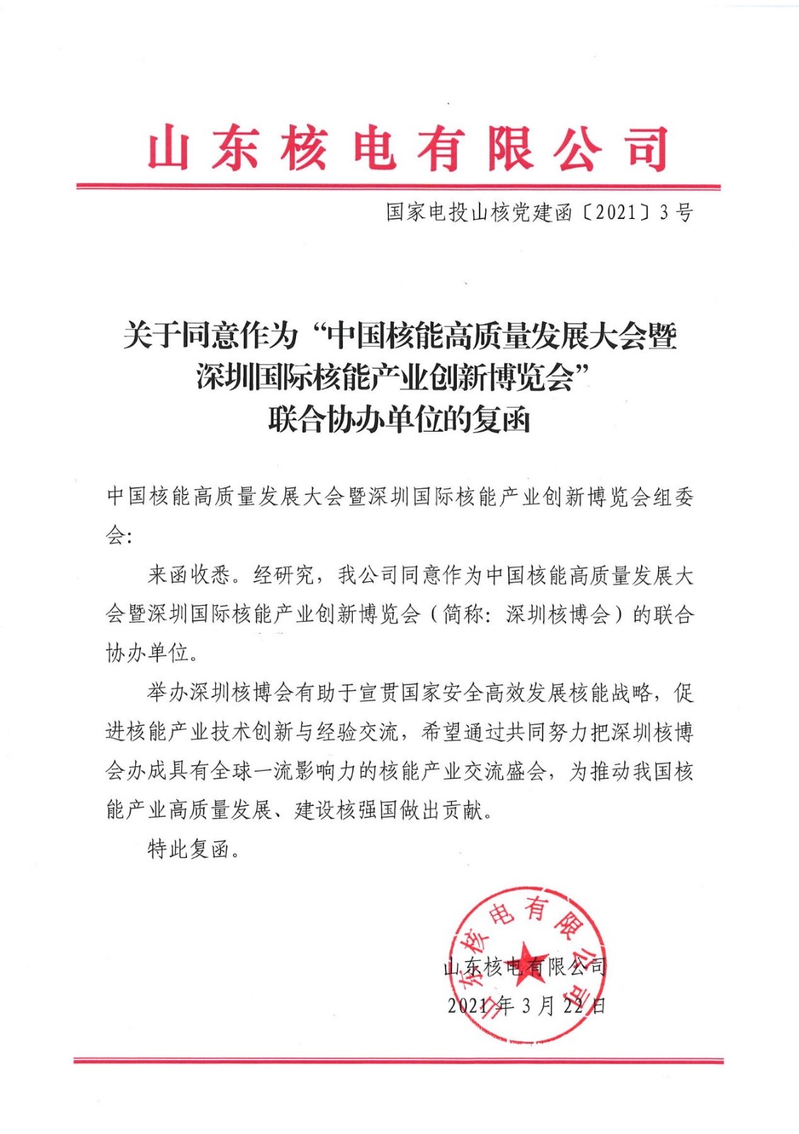 為推動(dòng)我國(guó)核能產(chǎn)業(yè)高質(zhì)量發(fā)展、建設(shè)核強(qiáng)國(guó)做出貢獻(xiàn),山東核電有限公司(以下簡(jiǎn)稱“山東核電”)同意作為深圳核博會(huì)聯(lián)合協(xié)辦單位。