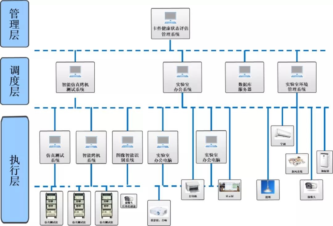 通過卡件健康狀態評估管理系統開展重要電氣卡件的仿真試驗和卡件老化以及健康狀態評估工作,該系統可以調用智能仿真烤機測試系統,設備辦公系統、數據庫服務器、設備環境管理系統等控制設備資源開展工作。健康狀態評價目標建設完成后,設備可以完成對各種整流器、逆變器、不間斷電源(UPS)、電動執行機構、發電機勵磁、PLC等設備的主要控制電路板件(PCBA)及其組件進行檢測、仿真、烤機、故障診斷等測試和實驗,并且根據終端仿真測試設備測試得到的數據保存在數據庫服務器中,通過大量數據進行機器學習,用于訓練人工智能算法使其建立對各種卡件健康狀態給與評估的能力,最終實現故障預測智能運維。