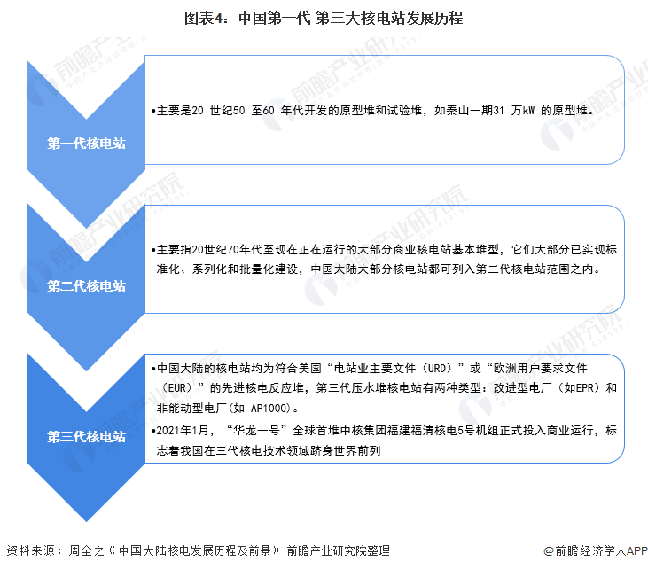 核電是戰略高科技產業,是大國必爭之地。在我國,核電站的發展在國家政策的推動和引導之下,經歷了第一代至第三代的發展階段: