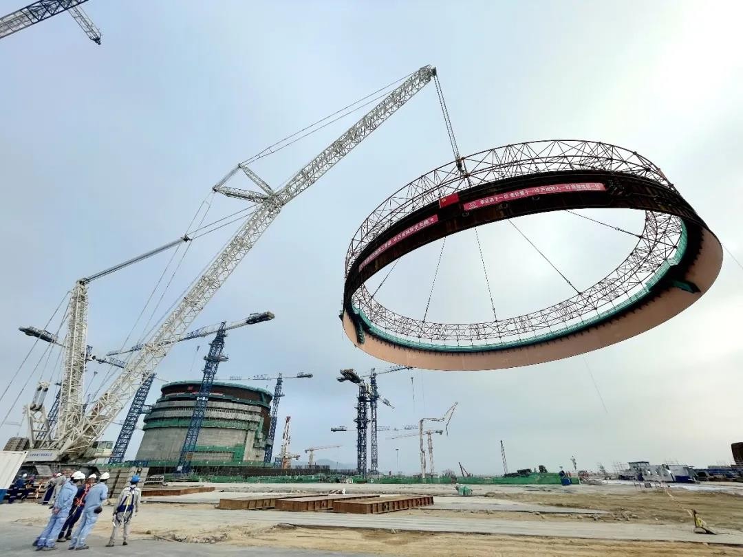 10月是“攻堅月”,也是“收獲月”。繼1號機組反應堆壓力容器10月19日吊裝成功之后,時隔僅1天,10月21日,漳州華龍再傳捷報——漳州核電2號機組核島鋼襯里模塊6安全穩妥吊裝就位。