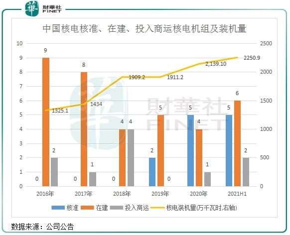 根據(jù)《中國核能發(fā)展報(bào)告(2020)》,我國自主三代核電會(huì)按照每年6-8臺(tái)的核準(zhǔn)節(jié)奏,實(shí)現(xiàn)規(guī)模化批量化發(fā)展。作為核電運(yùn)營領(lǐng)域兩大龍頭,中國廣核和中國核電未來有望持續(xù)享受"碳中和"戰(zhàn)略下核能增長的紅利。