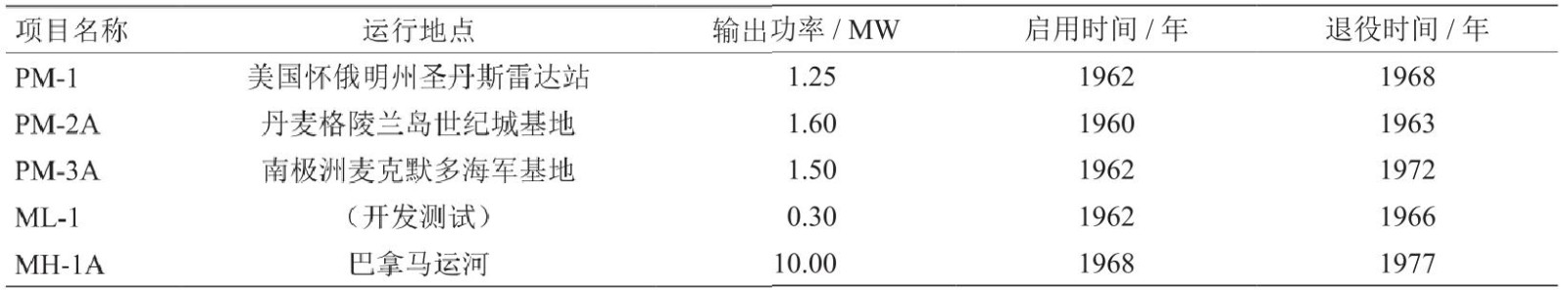 表 1美國陸軍核能計劃中的便攜 / 機動式反應堆系統
