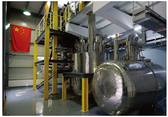(4) 釷基熔鹽堆安全與許可系統。完成了熔鹽堆非基巖上構筑物抗震設計標準和熔鹽實驗堆Ⅱ類堆安全分類論證,獲得國家核安全局認可。作為聯合主席成員單位參與國際固態燃料熔鹽堆安全標準(ANSI/ANS-20.1) 的編制;編寫了固態燃料熔鹽實驗堆安全設計準則。建成工程規模的非能動熔鹽自然循環實驗裝置(圖 2),首次驗證了熔鹽自然循環余熱排出系統的固有安全性。