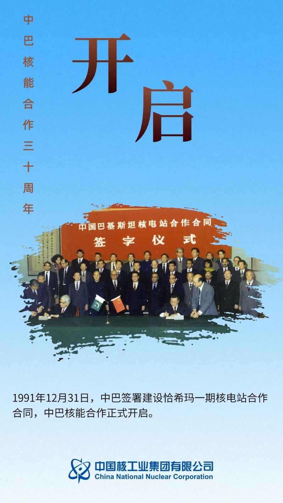 三十年前,1991年12月31日,中巴雙方在北京簽定了以秦山核電為參考,合作建設(shè)巴基斯坦恰?,敽穗娬镜暮贤?,拉開了中巴兩國和平利用核能合作序幕。