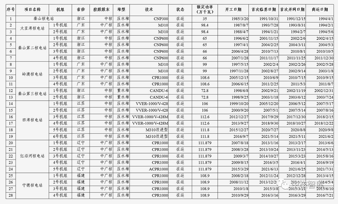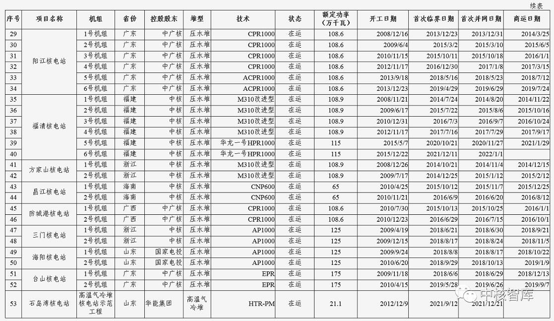 表1 我國大陸在運(yùn)核電機(jī)組情況(截至2022年1月5日)