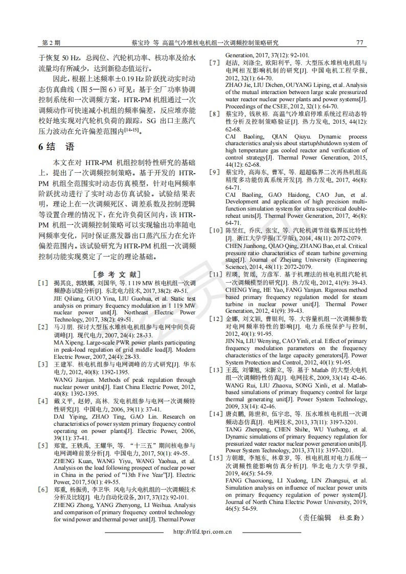 華能高溫氣冷堆核電示范工程(HTR-PM)是首臺商業(yè)運行的高溫氣冷堆核電機組,研究其一次調頻能力具有重要意義。在分析HTR-PM機組控制特性的基礎上,提出高溫氣冷堆核電機組一次調頻控制策略,并開發(fā)了HTR-PM機組全范圍實時動態(tài)仿真模型。針對電網(wǎng)頻率快速變化時,HTR-PM機組一次調頻過程的動態(tài)響應特性進行仿真試驗。試驗結果表明,理論上,在一次調頻參數(shù)、控制邏輯等設置合理的情況下,在一次調頻允許投入的負荷區(qū)間內,當頻率擾動時可以實現(xiàn)輸出功率變化,同時保證蒸發(fā)器出口蒸汽壓力在允許偏差范圍內。
