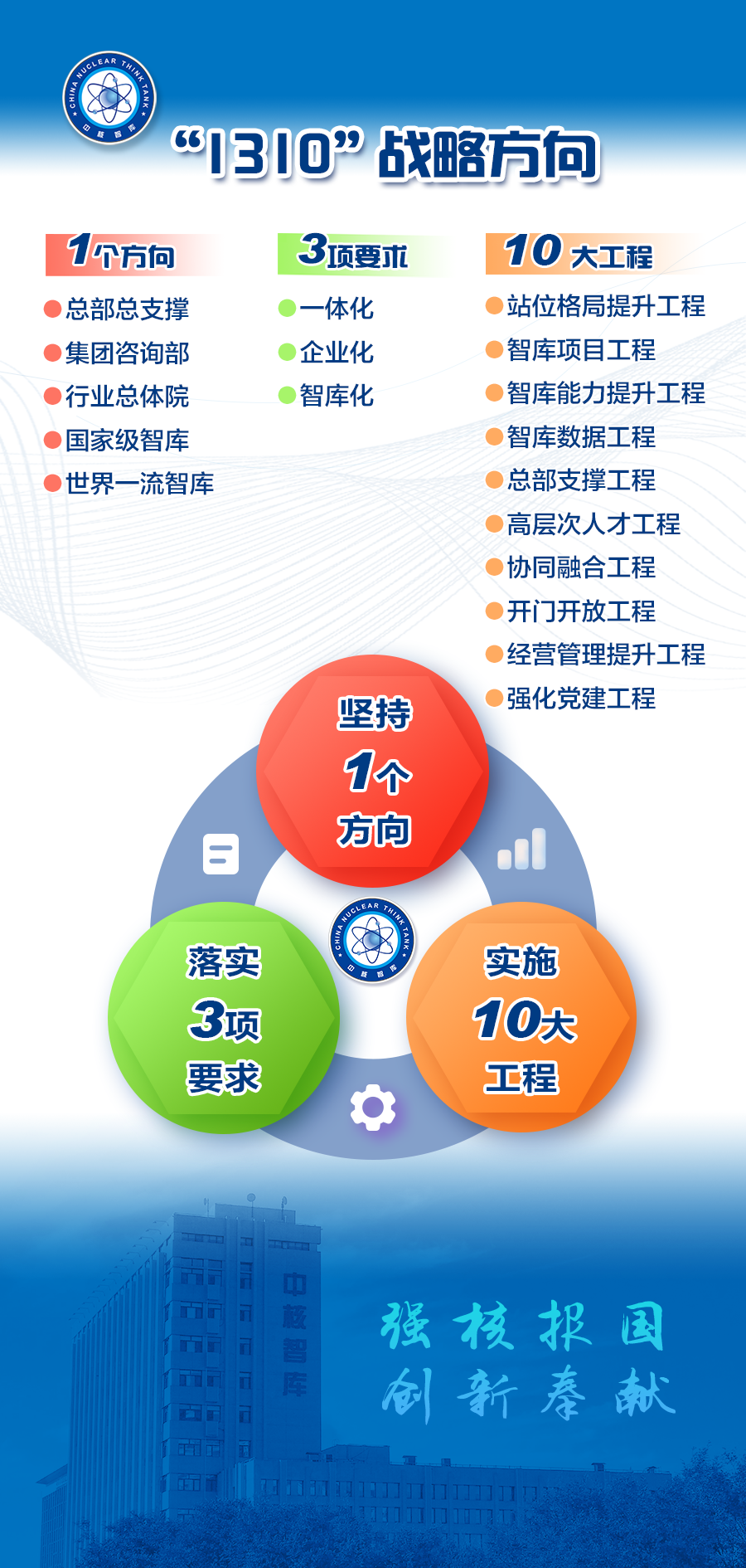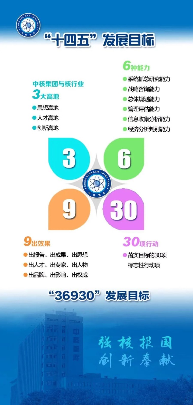 會議要求,一是堅持戰略規劃引領,錨定“1310”戰略目標和“36930”規劃目標,一張藍圖繪到底,積極推動各項重點任務落實落地;二是堅守初心和使命,堅定智庫發展方向,不斷鞏固基礎、完善體系、提升能力,為高質量推進中國特色新型智庫建設保駕護航;三是當前核工業迎來“兩彈一艇”以來最重要的戰略機遇期,對總院研究支撐工作的需求更加迫切,全院干部職工要切實增強使命感、責任感、緊迫感、壓力感,以高質量智庫成果提供高水平決策咨詢和參考。