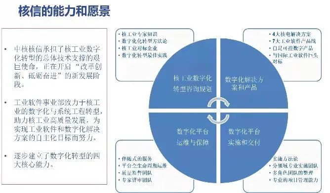 中核核信(計算機所)聚焦核工業數字化轉型關鍵業務領域,助力核工業主營業務數字化支撐和高質量發展,為此在原有團隊基礎上今年專門組建了工業軟件事業部,致力于核工業的數字化與系統工程轉型,以實現工業軟件和數字化解決方案自主化為目標,聚集了來自國際工業、軟件巨頭達索系統、國內航空、航天及汽車等行業的數字化專家人才隊伍,不斷強化“核工業數字化轉型咨詢規劃”、“數字化解決方案和產品”、“數字化平臺實施和交付”、“數字化平臺運維和保障”四大核心能力。立足新發展階段,以提供“伴隨式服務”為契機,不斷賦能數字化技術與核工業主業、重大重點工程建設等,為核工業高質量發展貢獻力量。