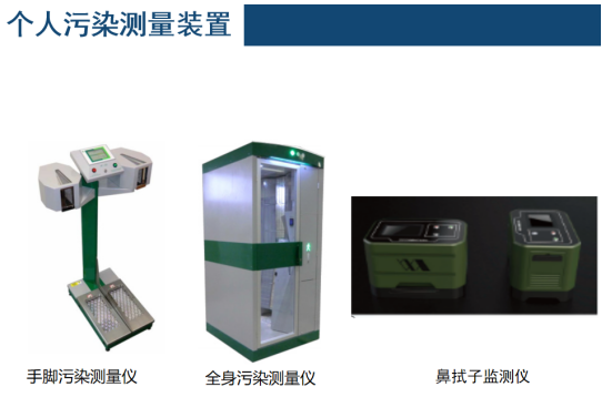 • 個(gè)人監(jiān)測(cè) 目的是控制應(yīng)急響應(yīng)人員的照射和污染,監(jiān)測(cè)來自事故區(qū)域人員的皮膚和衣物的污染,監(jiān)測(cè)放射性碘的攝入情況,個(gè)人監(jiān)測(cè)儀器主要包括各類個(gè)人劑量計(jì)、便攜式表面污染儀、甲狀腺計(jì)數(shù)器等,另外門式人員污染監(jiān)測(cè)儀可滿足大量人群的快速監(jiān)測(cè)需要。