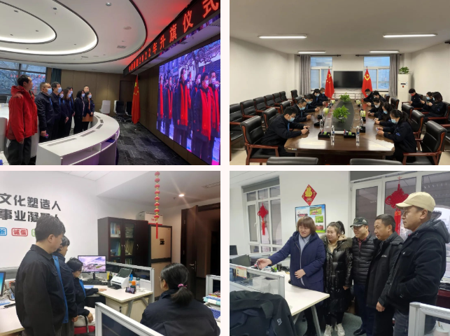 公司領導、工會主席,副總師級領導,各部門和參控股單位代表共240人現場參加升旗儀式,公司全體職工通過線上直播觀看新年升旗儀式。