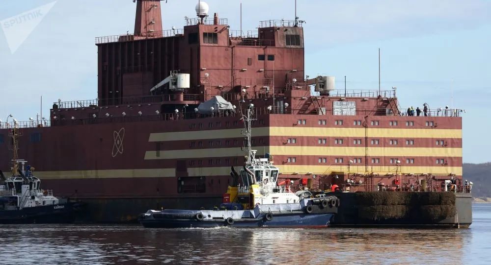 由牽引船引導的“羅蒙諾索夫院士”號浮動核電站“