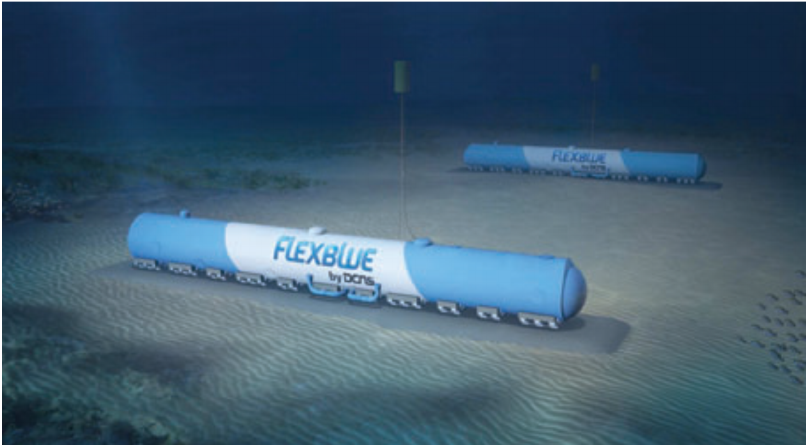 Flexblue是一個排水量12000的潛水器,裝機容量為6萬千瓦,是一種下潛式的柱形全模塊化移動浮動式核電站。