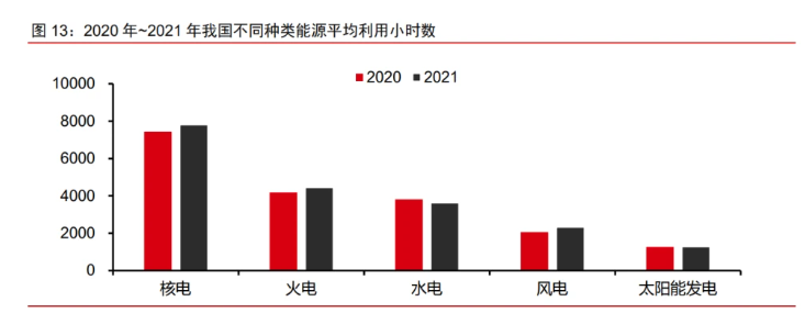 核電是我國大型電網基負荷能源的重要選項,以低碳清潔能源為主的新能源體系建設 過程中,核電的占比增加,將有利于我國電網的安全運行,以及提高風電、光電的利用效 率。2021 年,全國 6000 千瓦及以上電廠發電設備平均利用小時數為 3817 小時,同比增 加 60 小時。2021 年全國核電的平均利用小時數為 7802 小時,同比增加 352 小時,且長 期穩定維持在遠高于火電、水電等其他發電方式的水平。因此,發展核電是推動中國能源 結構低碳化轉型的重要措施,是中國低碳清潔新能源體系建設的必然選擇。