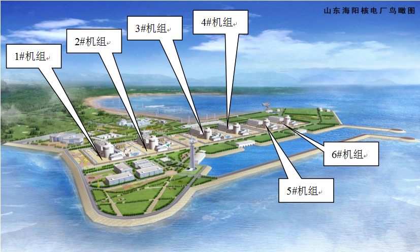山東海陽核電廠廠址規劃建設六臺百萬千瓦級壓水堆核電機組。建設采用一次規劃、分期建設的方式。一期工程2臺AP1000機組已完成了選址階段、建造階段和運行階段環境影響報告書的審批,一期工程已建設完畢并順利投產,目前正在正常運行;二期工程2臺CAP1000機組已通過了選址階段環境影響報告書的審批,建造階段環評正在審批過程中。