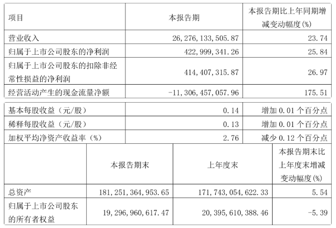 2022年一季度,公司加權平均凈資產收益率為2.76%,同比下降0.12個百分點,環比下降0.25個百分點。