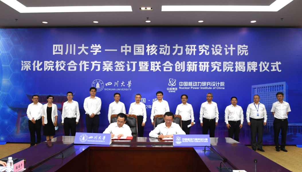 5月7日,中國核動力研究設(shè)計院與四川大學(xué)在成都舉行深化院校合作方案簽訂暨聯(lián)合創(chuàng)新研究院揭牌儀式。四川大學(xué)黨委書記王建國、副校長褚良銀,院黨委書記萬鋼、院長王叢林、顧問周定文及校院雙方相關(guān)單位負(fù)責(zé)人出席儀式,儀式由周定文主持。