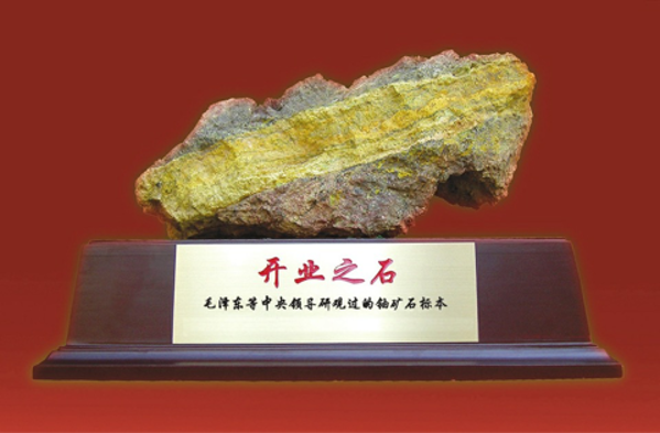 1954年,這塊鈾礦石在廣西壯族自治區(qū)被發(fā)現(xiàn)。1955年1月,它被帶往北京,出現(xiàn)在中共中央書(shū)記處專(zhuān)門(mén)研究我國(guó)發(fā)展原子能事業(yè)的擴(kuò)大會(huì)議上。當(dāng)聽(tīng)到用于測(cè)量放射性的蓋革計(jì)數(shù)器靠近該礦石發(fā)出“嘎嘎”的響聲時(shí),與會(huì)的中央領(lǐng)導(dǎo)人均感到十分振奮。