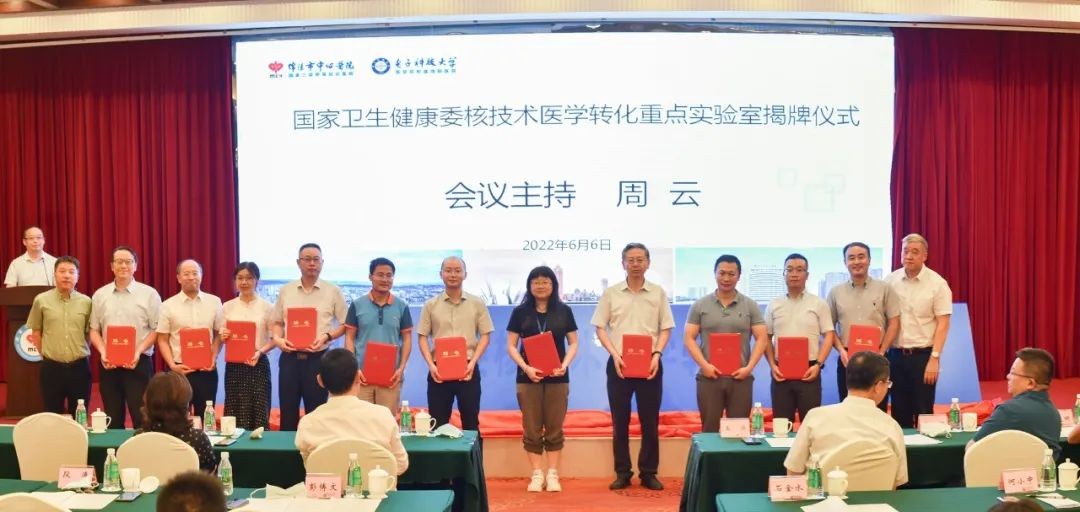 四川省衛(wèi)健委副主任郭毅,四川省衛(wèi)健委科教處處長彭博文,四川省衛(wèi)健委科教處副處長張筱烽,綿陽市人民政府副市長蔣麗英、綿陽市人民政府副秘書長李曉林,綿陽市衛(wèi)健委黨委書記、主任周云,四川大學(xué)華西基礎(chǔ)醫(yī)學(xué)與法醫(yī)學(xué)院副院長張舒羽、流體物理研究所,核物理與化學(xué)研究所,應(yīng)用電子學(xué)研究所、西南科技大學(xué)相關(guān)領(lǐng)導(dǎo)及科研團(tuán)隊,科學(xué)城醫(yī)院黨委書記薛培麗,綿陽市中心醫(yī)院黨委書記鮮于劍波、綿陽市中心醫(yī)院院長蔣濤及院班子成員參與了揭牌儀式。
