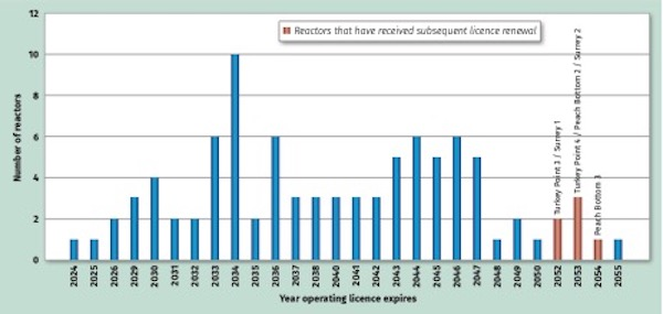 美國早期的核電廠(最古老的電廠),壽命延長已進入下一階段:即所謂的“后續(第二次)許可證續期”(SLR)。