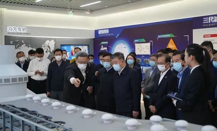 陳竺一行參觀了國家電投科技館,觀看了“國和一號”核電技術、“御風系統(tǒng)”風光技術開發(fā)測評等模型,了解了科技創(chuàng)新情況,充分肯定了國家電投成為全國唯一擁有全部電源類型發(fā)電企業(yè)的建設成就,以及在推進綠色低碳轉(zhuǎn)型、發(fā)展清潔能源方面的努力和成效。