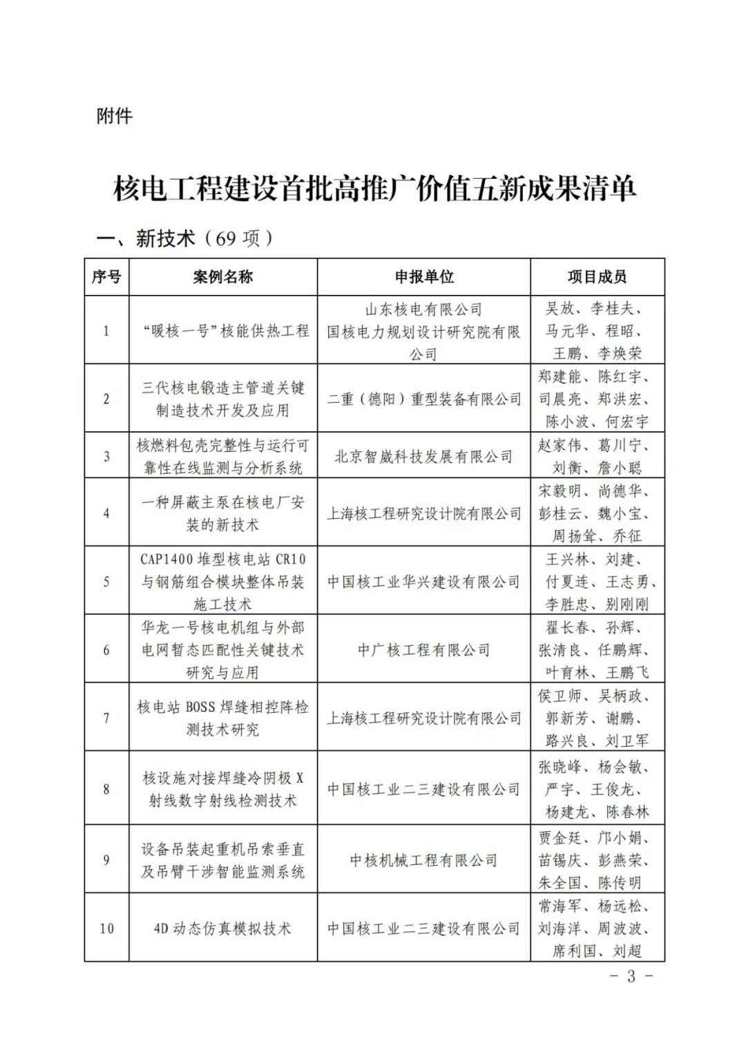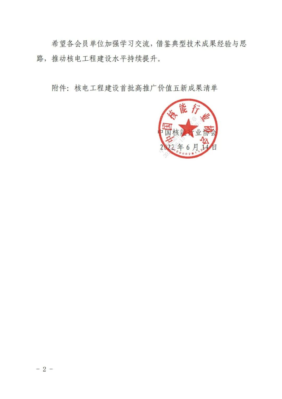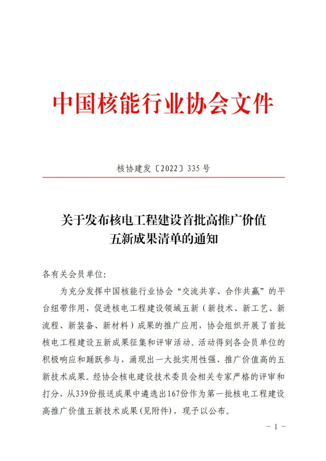關于發布核電工程建設首批高推廣價值五新成果清單的通知