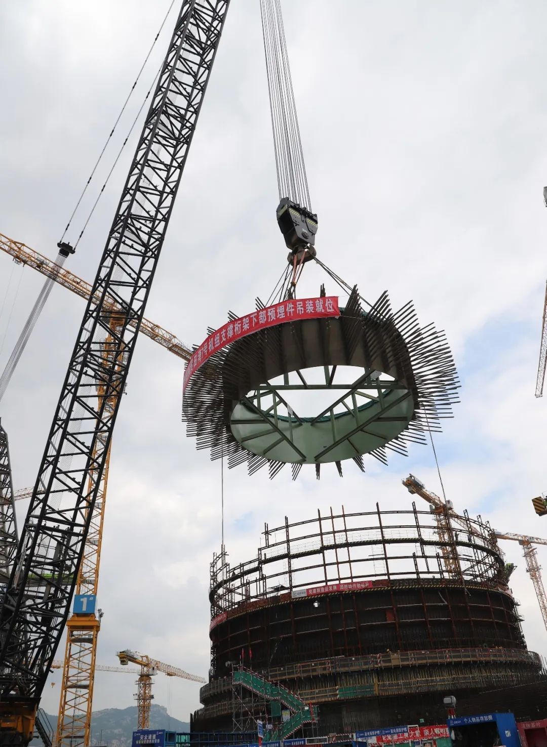 2022年7月7日上午11:30,田灣核電站7號機組支撐桁架下部預埋件順利吊裝就位。