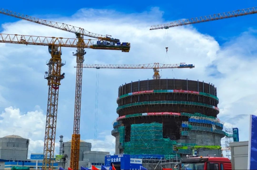 2022年7月13日12時55分,華能海南昌江核電二期工程3號核島鋼村里筒整10段鋼襯里壁板全部吊裝就位,又一重大里程碑順利實現,較計劃提前3天完成,標志著3號機組鋼襯里筒壁全部安裝就位,為后續環吊牛腿的安裝提供了有利的條件。