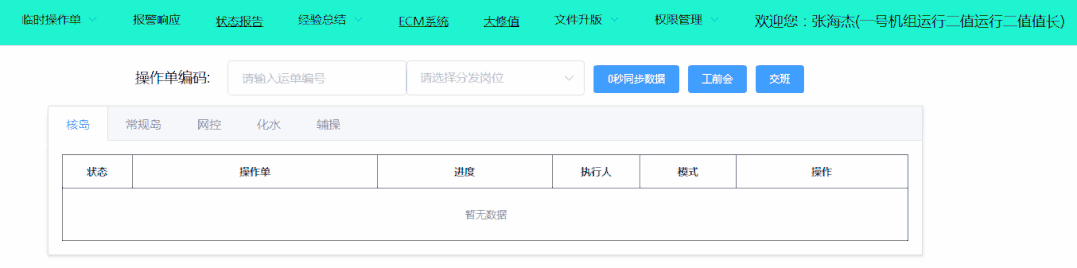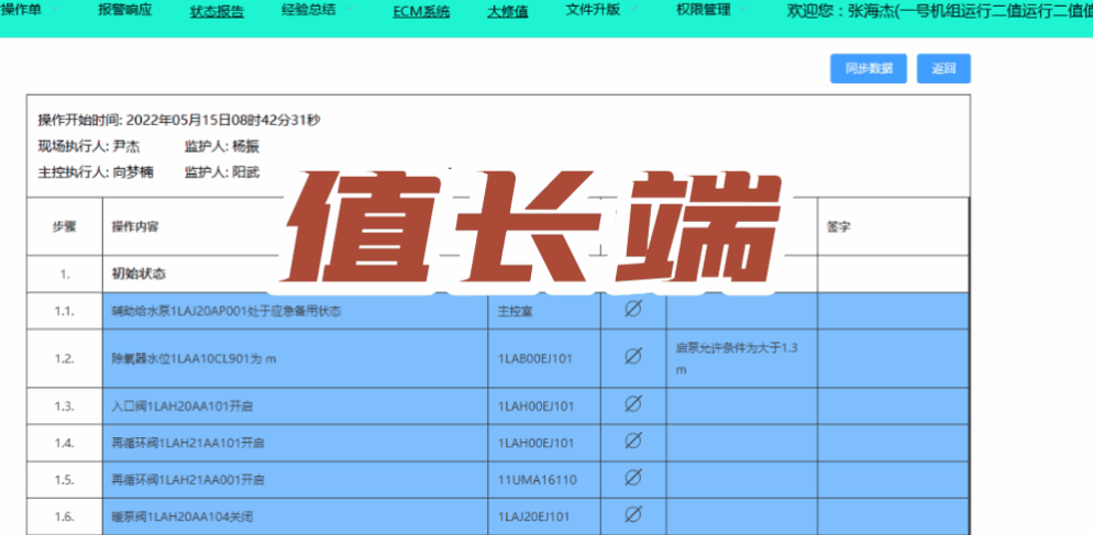 電子操作單支持在網(wǎng)絡(luò)終端使用,操作數(shù)據(jù)能夠?qū)崟r回傳至主控室,支持三方(值長、操縱員、現(xiàn)場)數(shù)據(jù)共享;對操作單中的不執(zhí)行項或選擇項,值長和操縱員可進(jìn)行在線審批;僅需在線導(dǎo)出和提交兩步,即可完成操作單的派發(fā)、使用、歸檔流程。
