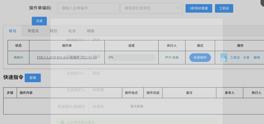 快速指令模塊和臨時操作單編寫模塊分別用于單一指令和臨時操作單在線使用,實(shí)現(xiàn)操作指令的標(biāo)準(zhǔn)化,改變原有的電話下指令方式,大大降低人因失誤可能性。