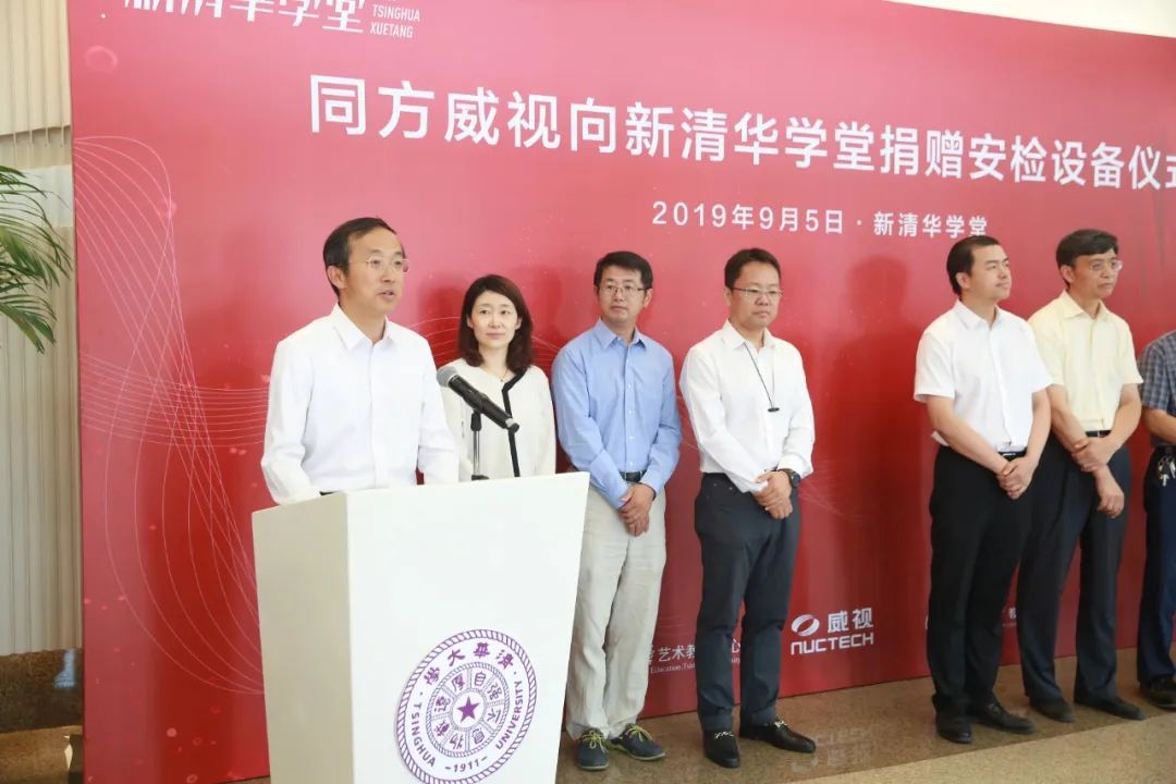 圖片▲陳志強(qiáng)在向清華大學(xué)捐贈安檢設(shè)備儀式上致辭