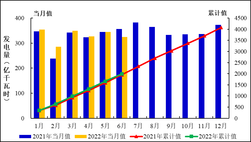 圖1:2022年1-6月全國發電量統計分布