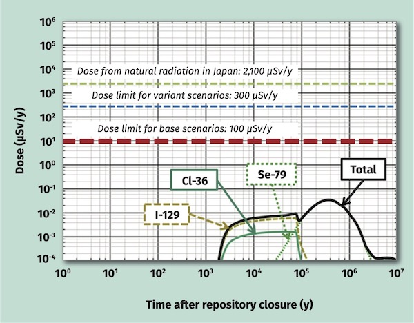 處理玻璃化高放廢物計算的典型輻射劑量(www.numo.or.jp)