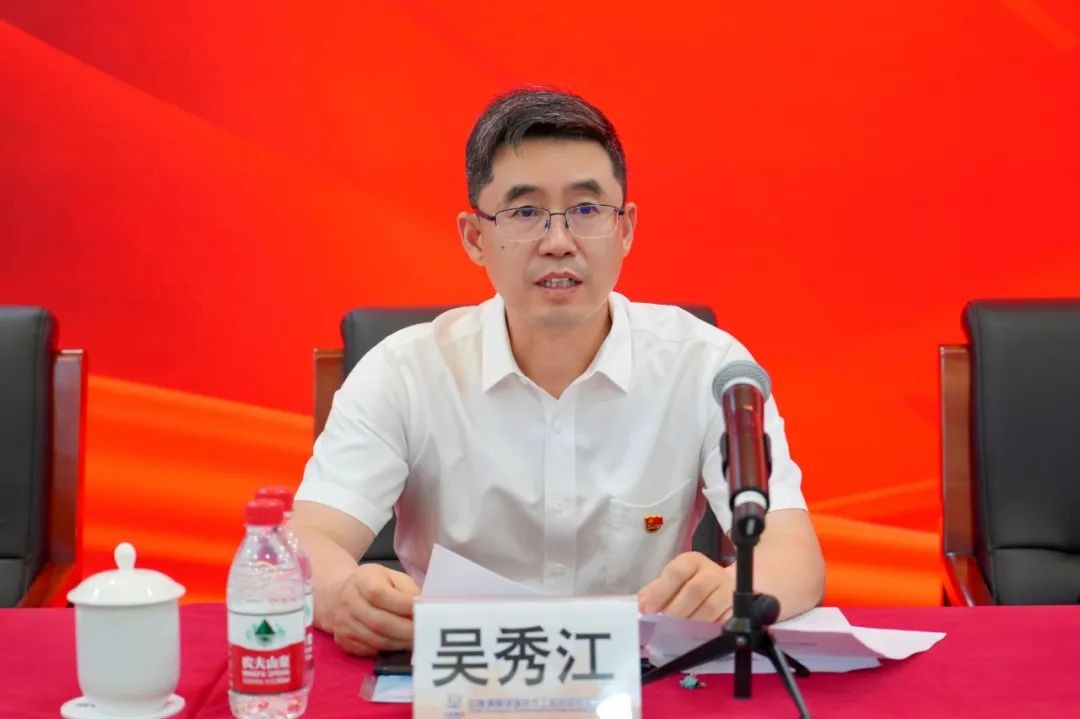 2022年9月6日,中核清原召開干部大會,中核環(huán)保黨委書記、董事長吳秀江出席會議并講話。中核清原黨委書記、董事長呂鋼主持會議。
