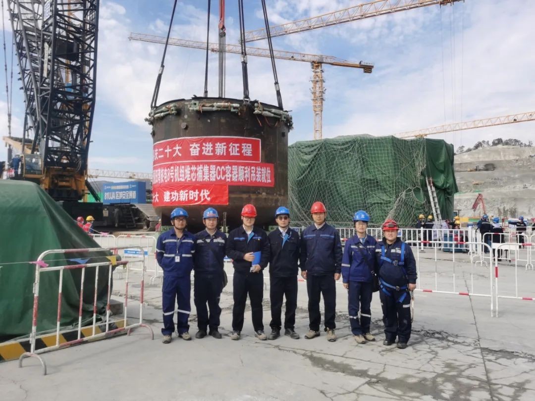 在各單位通力協(xié)作下,田灣項(xiàng)目部工程和設(shè)備部門默契配合,整個(gè)運(yùn)輸及轉(zhuǎn)運(yùn)、吊裝工作安全、高效、順暢推進(jìn),8號(hào)機(jī)組堆芯捕集器容器吊裝就位,為中核工程EPC管理模式再續(xù)華章,以工程建設(shè)優(yōu)異成績獻(xiàn)禮黨的二十大。