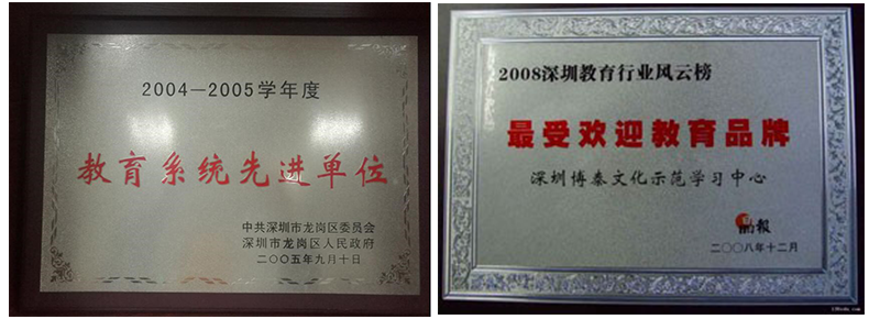 博泰,取自《荀子·勸學》和《元史·許衡傳》。意為知識淵博,且處之泰然。博學者、泰天下。水流萬里,必有其源;木高千丈,自有其本。中心自創(chuàng)辦以來,一直秉承“教書育人 誠信辦學”的辦學理念,始終堅持“質(zhì)量第一,信譽至上”的辦學方針,以給深圳經(jīng)濟和社會發(fā)展培養(yǎng)人才為己任,10多年來為社會輸送了一大批各類優(yōu)秀人才,深受廣大學員、用人單位好評,贏得了社會各界的廣泛贊譽,1996年被評為深圳特區(qū)“十年成人教育先進單位”,2003年成為深圳市培訓行業(yè)“十佳誠信辦學單位”,2005年獲得“知名品牌,優(yōu)質(zhì)服務(wù)”獎、深圳品牌培訓“最具人氣獎”,2006年再獲深圳市全民終身學習活動周“組織獎”,2014年榮獲中國教育學會“全國十佳教育培訓單位”稱號,2021年成為深圳市“希望之星”十佳教育機構(gòu)。博泰教育集團還榮獲深圳特區(qū)四十周年教育行業(yè)杰出貢獻獎。