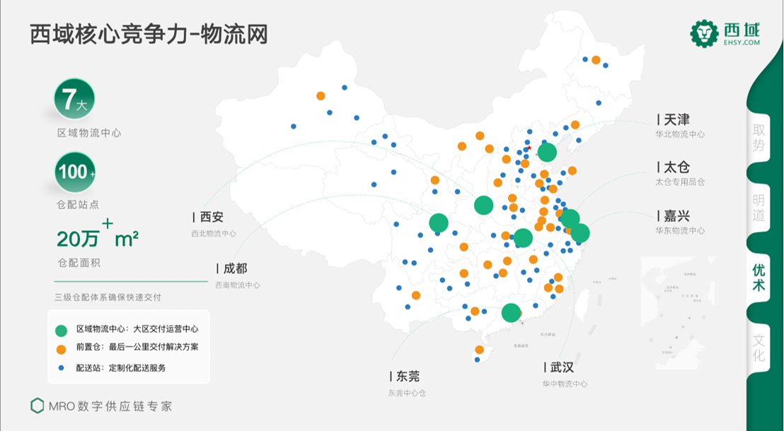 西域大力發展 “五張網——數字網、產品網、物流網、服務網、人才網”核心競爭力,全方面提升服務能力,幫助客戶實現MRO非生產物料的數字化采購及管理,縮短供應鏈貨期,確保正品行貨,降低采購成本,致力于成為中國制造業的MRO數字供應鏈基礎設施,助力中國數字經濟高質量發展。