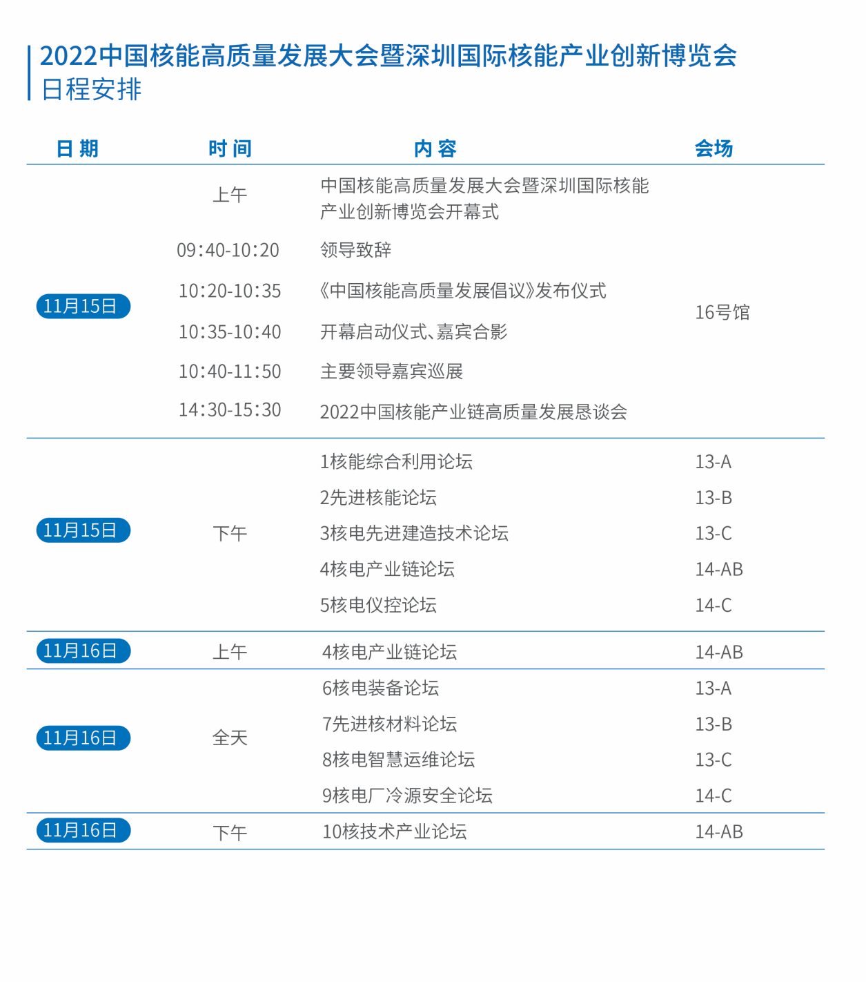 作為高交會(寶安會場)的重要組成部分,2022中國核能高質(zhì)量發(fā)展大會暨深圳國際核能產(chǎn)業(yè)創(chuàng)新博覽會(簡稱“深圳核博會”)將于2022年11月15-17日在深圳國際會展中心隆重啟幕!