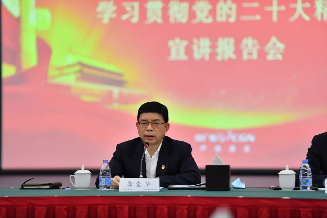 宣講會上,龔堂華指出,黨的二十大是在全黨全國各族人民邁上全面建設社會主義現代化國家新征程、向第二個百年奮斗目標進軍的關鍵時刻召開的一次十分重要的大會,是一次高舉旗幟、凝聚力量、團結奮進的大會。習近平總書記的報告,深刻闡釋了新時代堅持和發展中國特色社會主義的一系列重大理論和實踐問題,描繪了全面建設社會主義現代化國家、全面推進中華民族偉大復興的宏偉藍圖,為新時代新征程黨和國家事業發展、實現第二個百年奮斗目標指明了前進方向、確立了行動指南,是黨和人民智慧的結晶,是黨團結帶領全國各族人民奪取中國特色社會主義新勝利的政治宣言和行動綱領,是馬克思主義的綱領性文獻。
