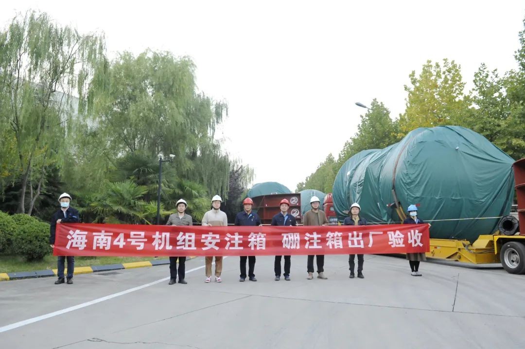 2022年11月15日,西核設備承制的海南昌江核電4號機組“華龍一號”安注箱、硼注箱5臺設備經“陸--江--海”聯運4400公里安全運抵海南昌江核電大件碼頭,實現了核電工程三級里程碑節點要求,保障了后續土建施工順利開展。