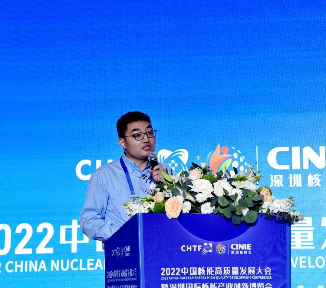 發(fā)布會(huì)上,中核裝備技術(shù)研究(上海)有限公司黃遠(yuǎn)作”核電智能防人因場景創(chuàng)新產(chǎn)品“主題演講。