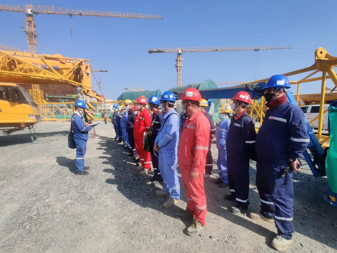 安注箱從進廠到吊裝經歷了設備倒運、開箱檢驗、索具連接、試吊及翻轉豎立、吊裝就位等多個步驟。因為體態圓胖重心難調,安注箱的翻轉作業是其中難度最大的,這需要兩臺起重機相互精準配合,同時緩慢起鉤,防止設備發生自轉與吊索具打結,設備完全豎立后溜尾起重機再松鉤最終完成翻轉作業。為確保安注箱吊裝作業順利進行,昌江核電與海南核電及各協作單位堅持全過程旁站監督,逐一核實先決條件準備情況,全面排查安全隱患點,慢工出細活做到萬無一失。