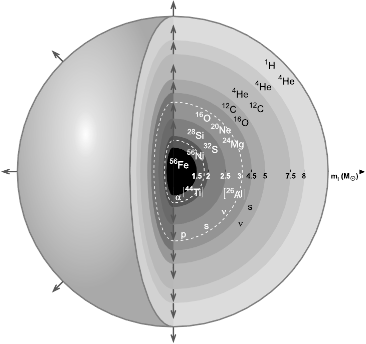 作為推動大質(zhì)量恒星走向死亡的“謝幕儀式”,核心塌縮型超新星爆發(fā)過程可產(chǎn)生極其強大的中微子沖擊波,這些高通量的中微子在向外噴發(fā)時會與恒星外層物質(zhì)發(fā)生反應(yīng),能改變外層物質(zhì)的元素豐度。而通過中微子核反應(yīng)74Ge(νe, e-)74As產(chǎn)生的74As,有34%的概率衰變?yōu)?4Se,或許可成為解釋太陽系74Se來源的一種途徑。