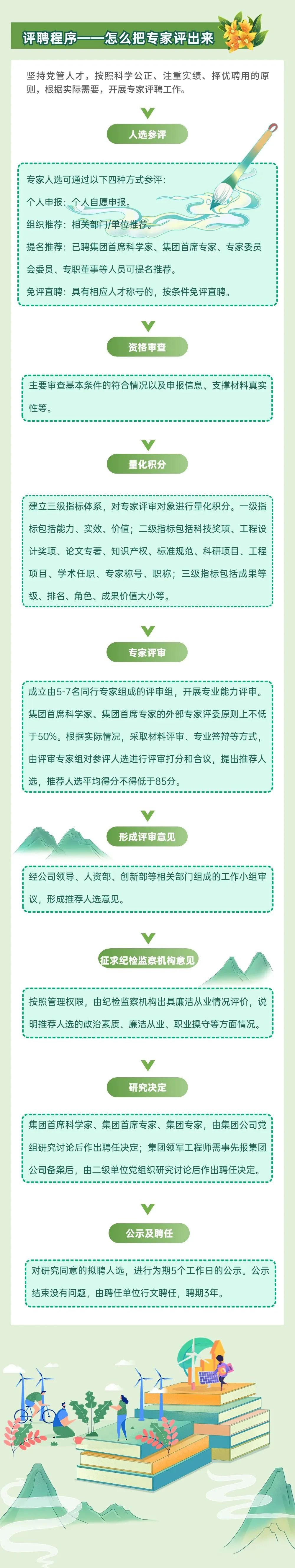 全新的專家體系,為全體國家電投人而打造為鼓勵人人成才而建立。目前國家電投已經完成首批集團專家評聘,下一步將推動體系全面落地實施加快培養,造就一大批大師、戰略科學家,一流科技創新領軍人才、卓越工程師,為國家電投“2035一流戰略”落地提供強有力的人才支撐!